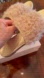 Slide sandal in pale pink shearling with rose gold leather sole.