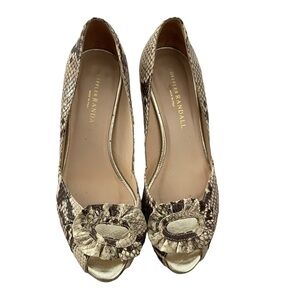 Loeffler Randall Embossed Snakeskin Python Patterned Kitten Heels Size 6.5