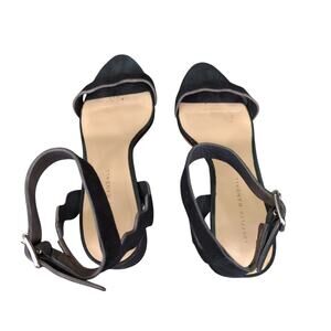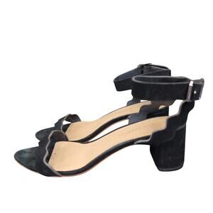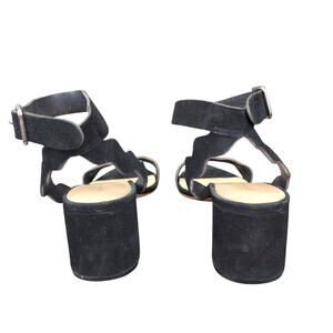 Loeffler Randall Emi Block Heel Sandals Black Suede Leather Open Toe Women's 9
