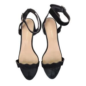 Loeffler Randall Emi Block Heel Sandals Black Suede Leather Crinkle Open Toe Women's Size 9 Dressy Formal