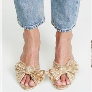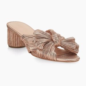 Loeffler Randall Emilia 50MM Pleated Lamé Knotted Mules Sandals heels