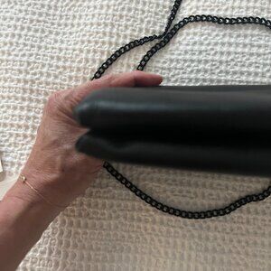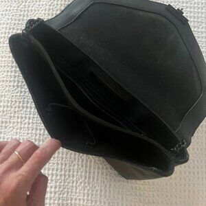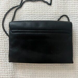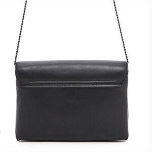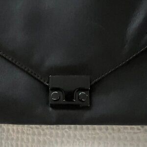 Loeffler Randall Envelope Turn-Lock Clutch, Cross Body Purse, Black Leather, Folder style, Black Hardware and chain. Approximate measurements: 10” x 7” x 2.5”. See images for wear. Tags not attached.
