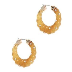 Loeffler Randall Hondi Janis Honey Resin Rhinestone Gold Tone Hoop Earrings