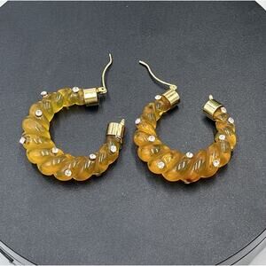 - Honey resin twisted hoop earrings with gold accents and sparkly rhinestones