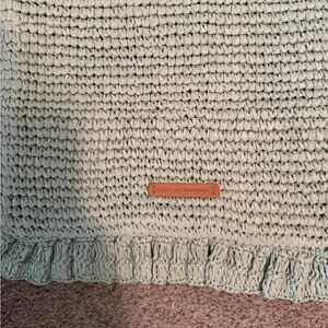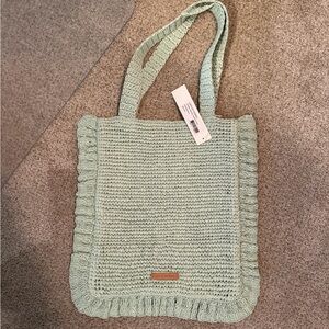 Light green crochet tote with a red rose and green leaves embroidered on the front. Soft, lightweight design ideal for everyday use. Long straps for comfortable shoulder carry. Stylish floral detail adds a feminine touch.