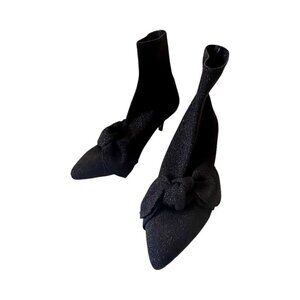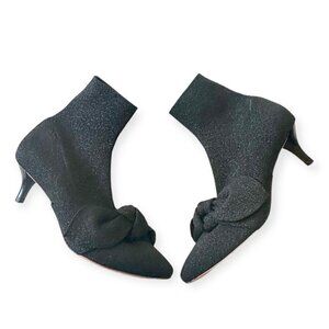 Loeffler Randall Kassidy Stretch Bow Booties, Black/Metallic Knit, 8.5B, New
