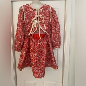 Loeffler Randall Laney Mini Dress, red rosette floral, size 4, 100% cotton