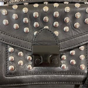 Great purse for a concert. Black leather with silver studs. Comes with garment bag. First 2 pics are not my personal bag. I added them for size and what the original bag looked like brand new.