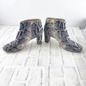 Biggest fall trend..snakeskin Neutral, animal print semi-pointed toes, block heels, concealed zipper closure at Sides. Year round classic timeless versatile must have. Excellent condition, no flaws, professional seller, ships same day. Elevate your look!