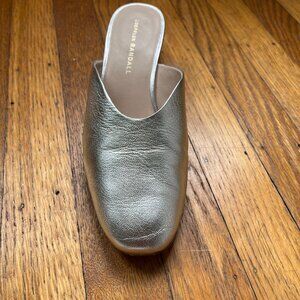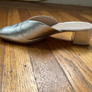 Loeffler Randall Lulu Metallic Silver Leather Block Heel Mule