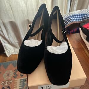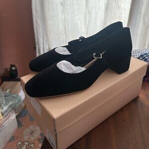 Loeffler Randall Lyra Velvet Black Heels Shoes Buckle Maryjanes NEW Size 10