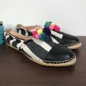 Loeffler Randall Mara Pom Pom Espadrille Slip On Canvas Shoes Women's Size 8B
