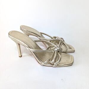 Loeffler Randall Margi Champagne Bow Heels Sandals Strappy Gold Size 11 Preowned