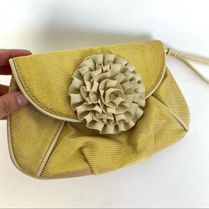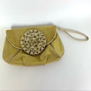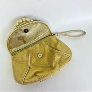 Loeffler Randall for Target Metallic Gold Ruffle Flower Wristlet Clutch Bag, magnetic closure.