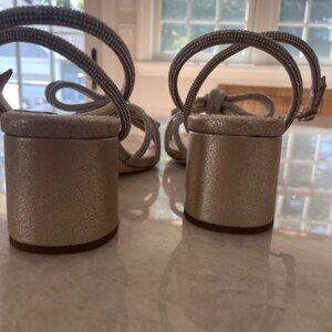 These were never worn - bought for a dress as a wedding gift, last minute decided not to wear them (wedding was outside, afraid of ruining them) and now it is too late to return to Saks.