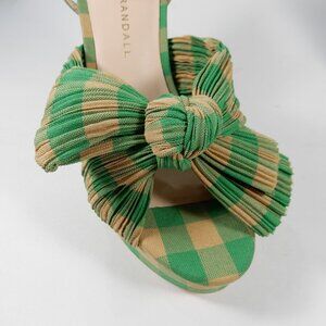 Loeffler Randall Natalia Bow Platform Heel SANDALS Size 5 Green Gingham NEW $450