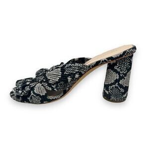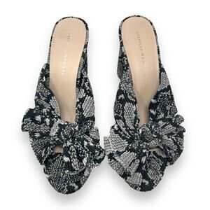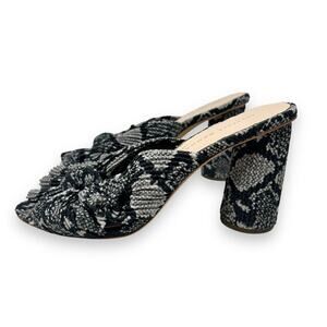 Loeffler Randall Penny Pleated Knot Mule Slip On Sandal Snakeskin Black White 8 Women’s