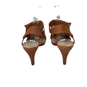 Loeffler Randall Pink Salmon Tan leather slingback straps Sandal Heels size 9B