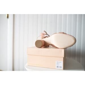 These stunning Loeffler Randall Reed sandals feature a pleated knotted bow detail in a soft hue, perfect for wedding looks or elegant summer occasions. Designed with a buckled ankle strap, padded footbed, and sculpted 3.5” round block heel for both style and comfort.