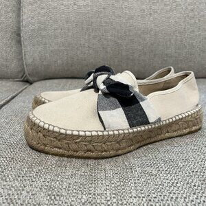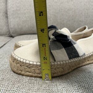 Loeffler Randall Rowen Canvas Gingham Bow Cream Espadrille Platform Size 38