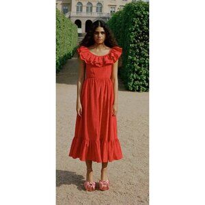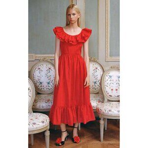 Loeffler Randall Serene Dress Red Cotton Blend Ruffle Midi Size 2
