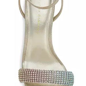 Embellished with a gleaming rhinestone vamp, Loeffler Randall's Shay sandals are crafted of eye-catching metallic suede.