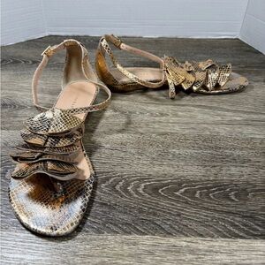 Loeffler Randall Shoes sz:9B Gold Sandals Vero Cuoio Leather Snake Skin print