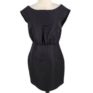 Loeffler Randall Dress Cocktail 4 Black Silk Wool Drape Back LBD Sheath Party