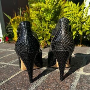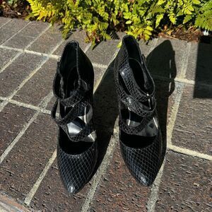 Loeffler Randall Size 10.5 Black Snakeskin Mary Jane Strappy High Heels Shoes