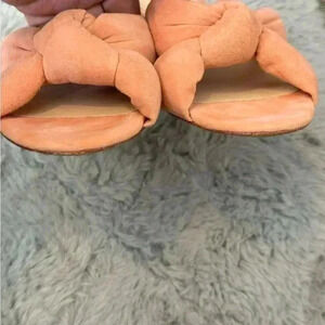 Loeffler Randall Size 7 Elsie Knotted Slide Sandal Blush Pink Suede Block Heel