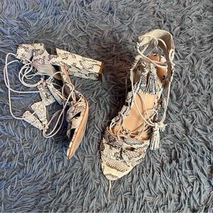 Loeffler Randall Snakeskin Animal Print Gladiator Strapy Tassel Sandals Size 8.5