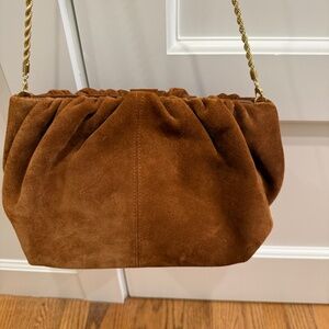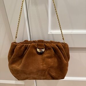 Loeffler Randall "Analeigh" Suede handbag/clutch. Excellent condition. Use as a clutch or shoulder bag with removable gold chain strap for versatile day to evening styling. Acrylic tortoiseshell accent for a classic touch, Magnetic closure for secure and easy access, Patch interior pocket for added convenience. Length: 11.75 inches, Height: 6.25 inches