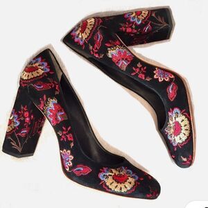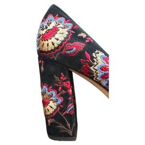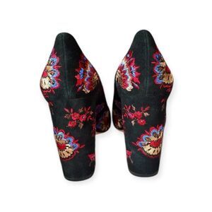 Loeffler Randall Sydnee Black Floral Suede Embroidery High Block Heel Pumps Sz 6