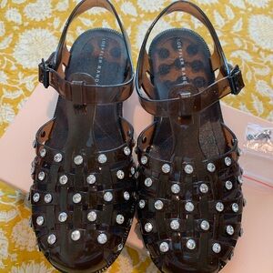 Loeffler Randall tortoise shell jelly’s , with rhinestone fisherman sandals.