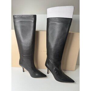 Loeffler Randall Whitney Tall Black Leather Boots Kitten Heel Size 6 NEW