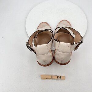 Loeffler Randall Women Size 10B Cream Beige Leather Peep Toe Buckle Heel Sandal