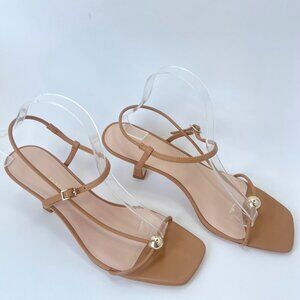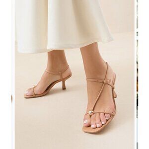 Loeffler Randall Women Triana Dune Sandals Leather Square Toe Kitten Heels 10B