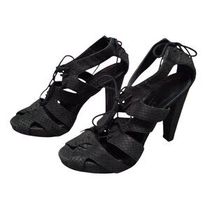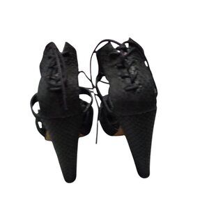 Loeffler Randall Women's 8 B Black Peep Toe Lace Up Snake Print Print Heels