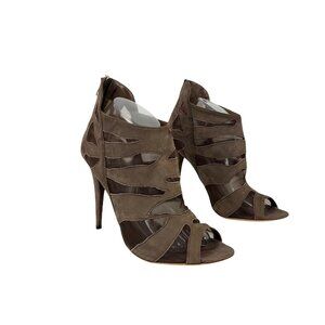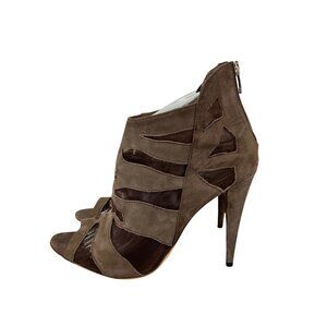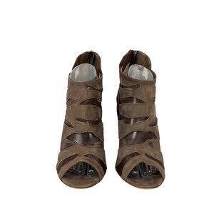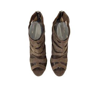 Loeffler Randall Womens Size 10 Brown Suede Mesh Open Toe Ankle Booties
