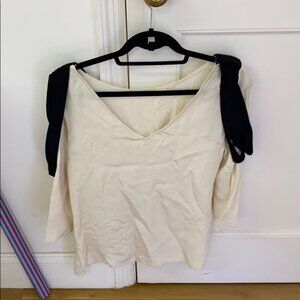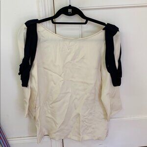 Loeffler Randall cream silky top. Three quarter sleeve top with black shoulder detail. Worn once. Size 2