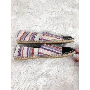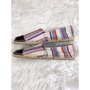 Loeffler Randall espadrille Multi Color Strip Knit Leather Slip On Flats 7 Boho