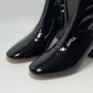 Anchored by a slightly slanted block heel, Loeffler Randall's Elise boots are made of rich patent leather. This ankle-length pair is enhanced with a perfectly rounded toe.