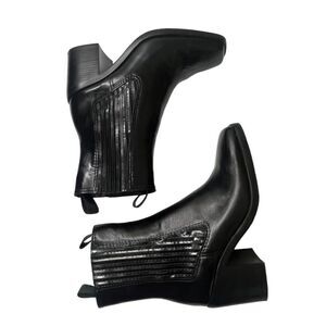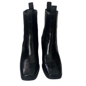 Loeffler Randall Arianna Square Toe Leather Black Ankle Boots size 6.5