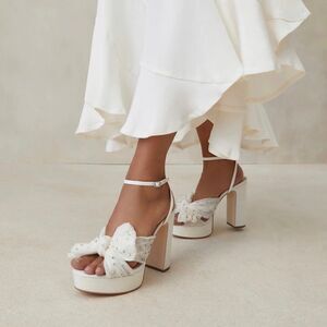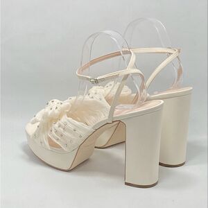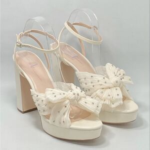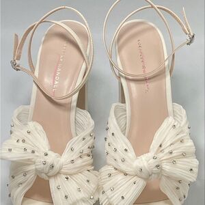 Loeffler Randall Natalia Crystal-Embellished Bow Platform Sandals size 10.5
