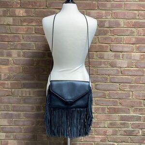 Loeffler Randall Black Leather Fringe Crossbody Bag