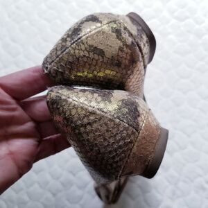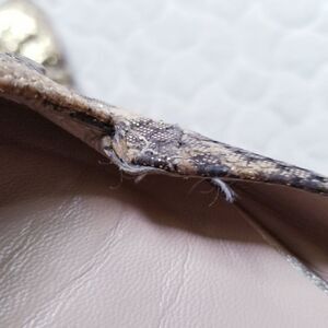Loeffler Randall snakeskin metallic embossed flats. Size 8 -8.5 (they fit like an 8 but I've read they can run a little small so probably sold as an 8.5.) Reptile pattern. Well loved, price reflects condition. Please see pics for numerous discrepancies and signs of wear.