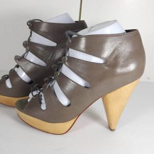Loefller Randall Women's US7,5B Leather Light Gray Wooden Heels Sandals Booties