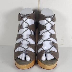 Loefller Randall Women's US7,5B Leather Light Gray Wooden Heels Sandals Booties.