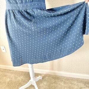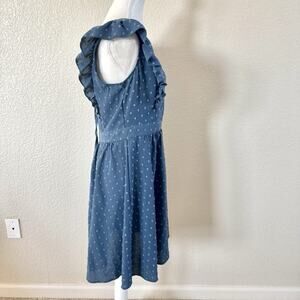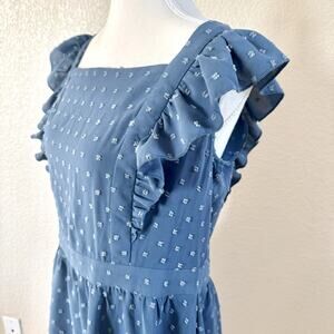Loemes Floral Fit & Flare Dress Womens Size Large Blue Ruffle Strap Textured