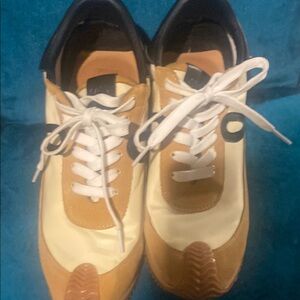 Trendy sneakers with a tan and cream design. Features black accents and white laces. No box or dust bags. Smoke and pet free. Worn a handful of times. My loss your gain